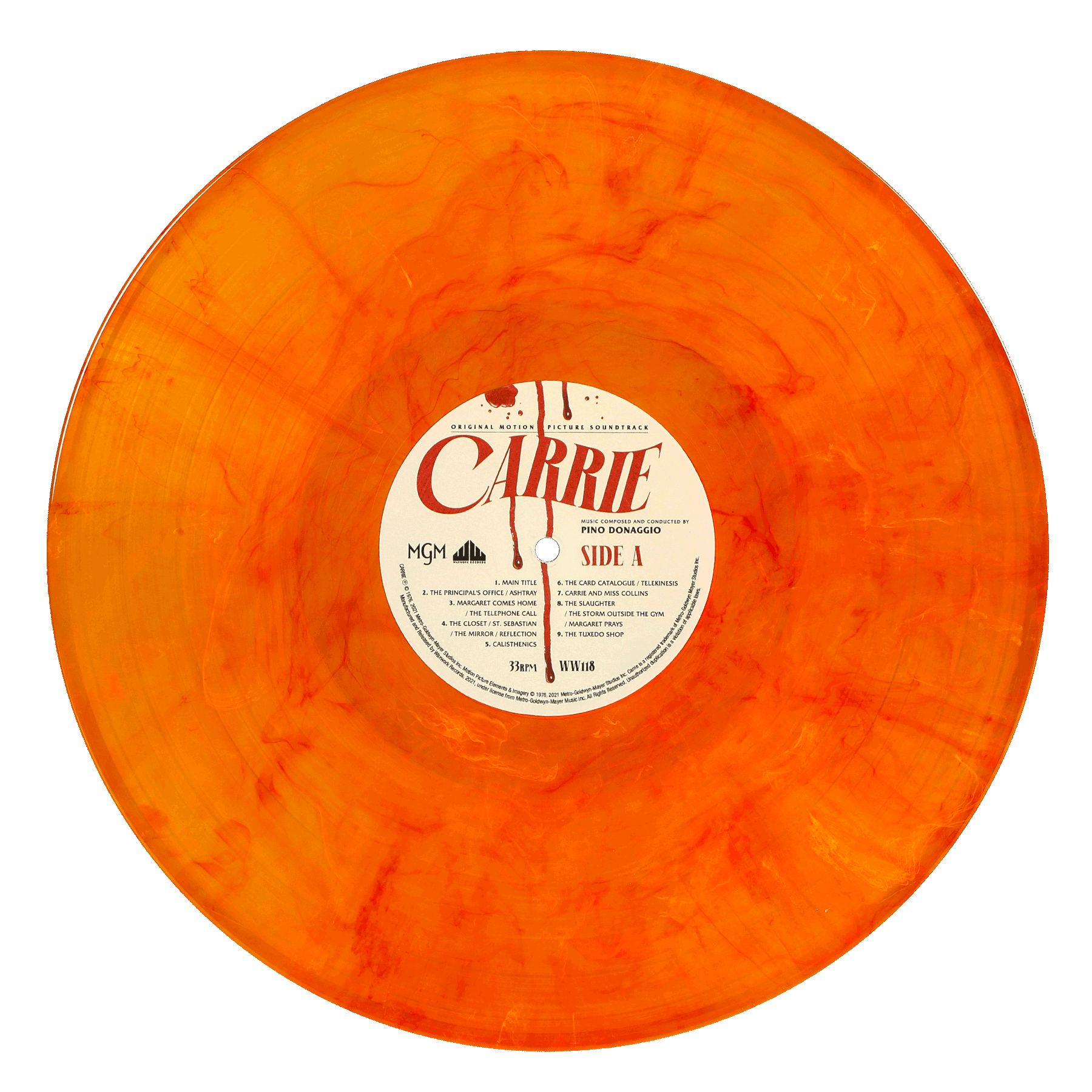 La bande originale du film Carrie comprend la musique du film étendue et remastérisée, pressée sur un vinyle coloré "Prom Fire smoke " exclusive, avec une nouvelle illustration par Phantom City Creative, ainsi que des pochettes gatefold avec finition satinée mate.