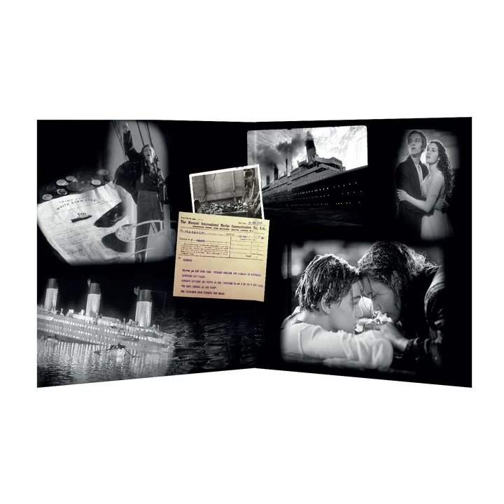 Titanic est disponible en édition limitée à 7500 exemplaires numérotés sur vinyle jaune translucide et comprend un livret de 8 pages, une affiche dépliante et une réplique imprimée de la première page du journal historique.
